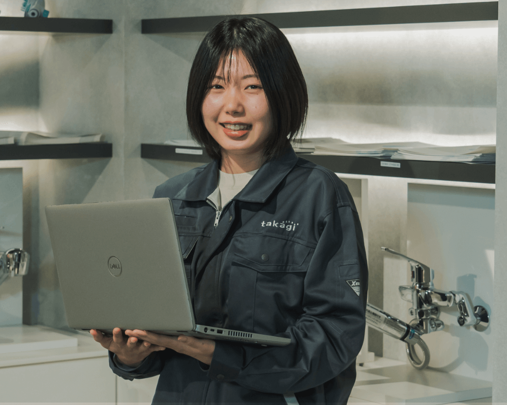 もうひとつはビジネスモデルの強さ。私がタカギに就職を決めた理由でもありますが、過去の先輩方が築いた安定したビジネスモデルがあるからこそ、新しいことにも挑戦していくんだという熱量があります。フィロソフィーにも「チャレンジ精神を持つ」とあるように挑戦を歓迎する姿勢が根づいており、それが会社を成長させる原動力になっています。
